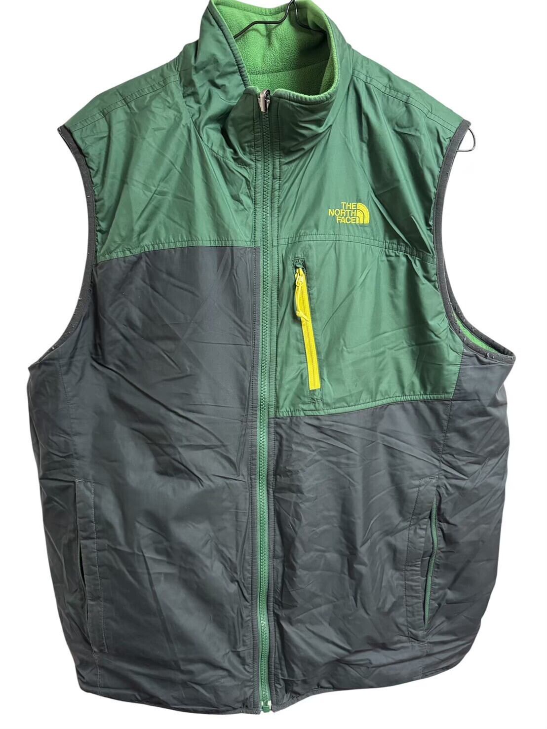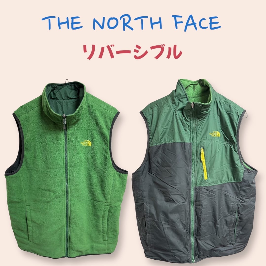 大人気!THE NORTH FACEグリーンのフリースベストです。こちらはリバーシブルとなっておりますので、様々なシーンでご活用頂けます。パーカーやシャツの上に羽織っても良し、インナーとしてアウターの下に入れてもベストですので嵩張らなく温度調整が可能です。アウトドアでも街着でも1枚あれば重宝します。ポケットは使い勝手のいいチャック付き!この機会に是非どうぞ。