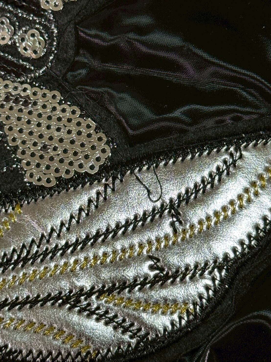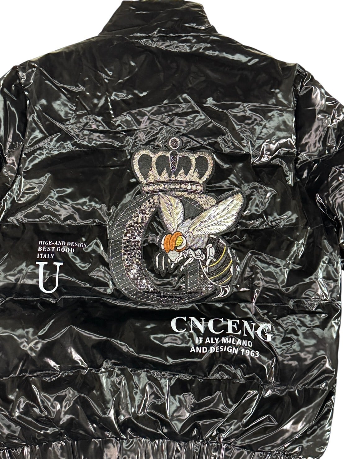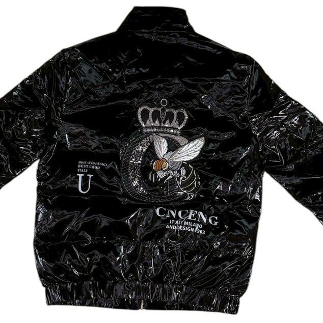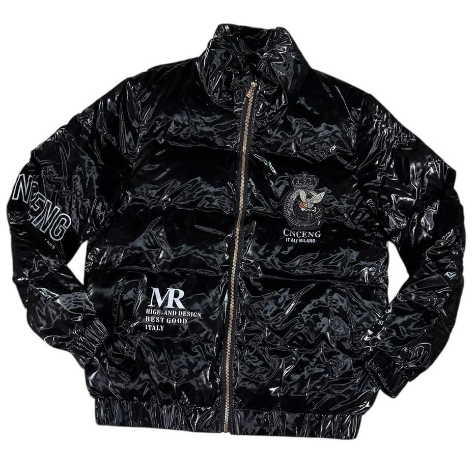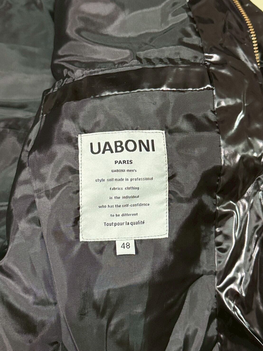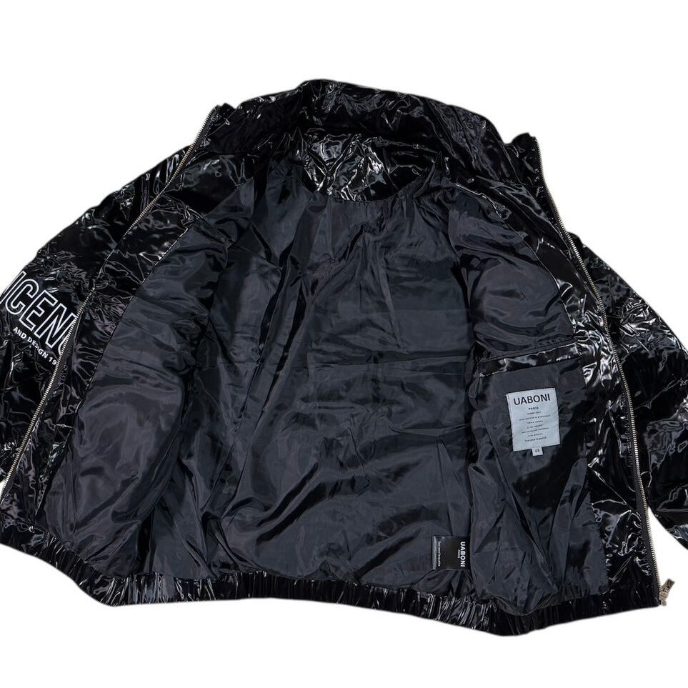 UABONI PARIS 中綿ジャケット 光沢ブラック 刺繍デザイン サイズ48