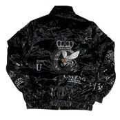 光沢感のあるブラックボディに、フロント・バック・袖に刺繍やロゴデザインが施された、インパクトのあるデザインが特徴です。