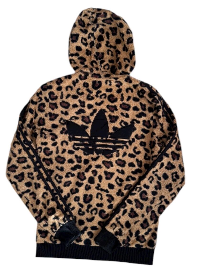 豹柄のデザインが特徴のパーカーです。adidasの象徴であるロゴが前面の胸元と背面に大きく施されています。程よい厚みのパーカーなので1枚でも、アウターの中にも着ていただける1着です。