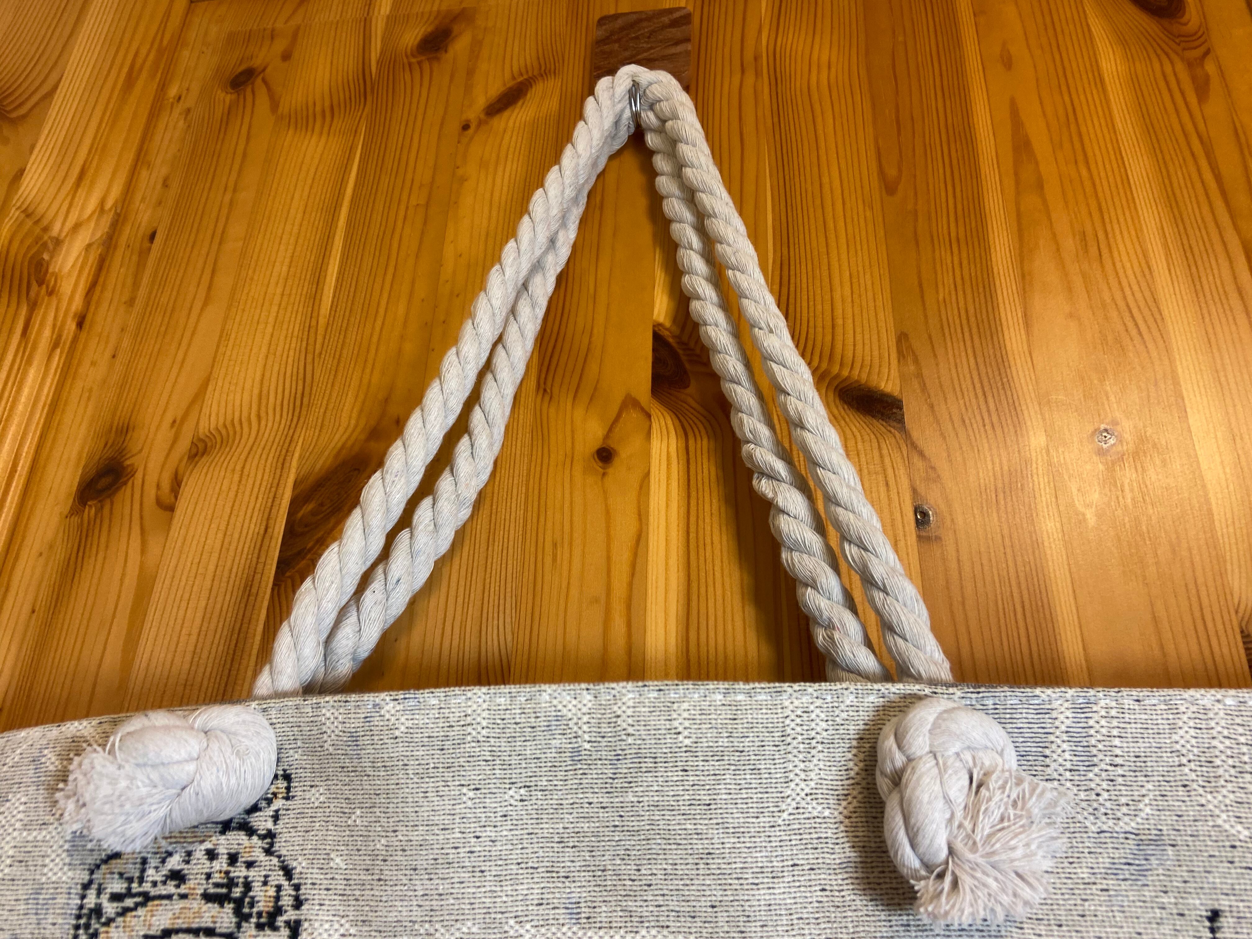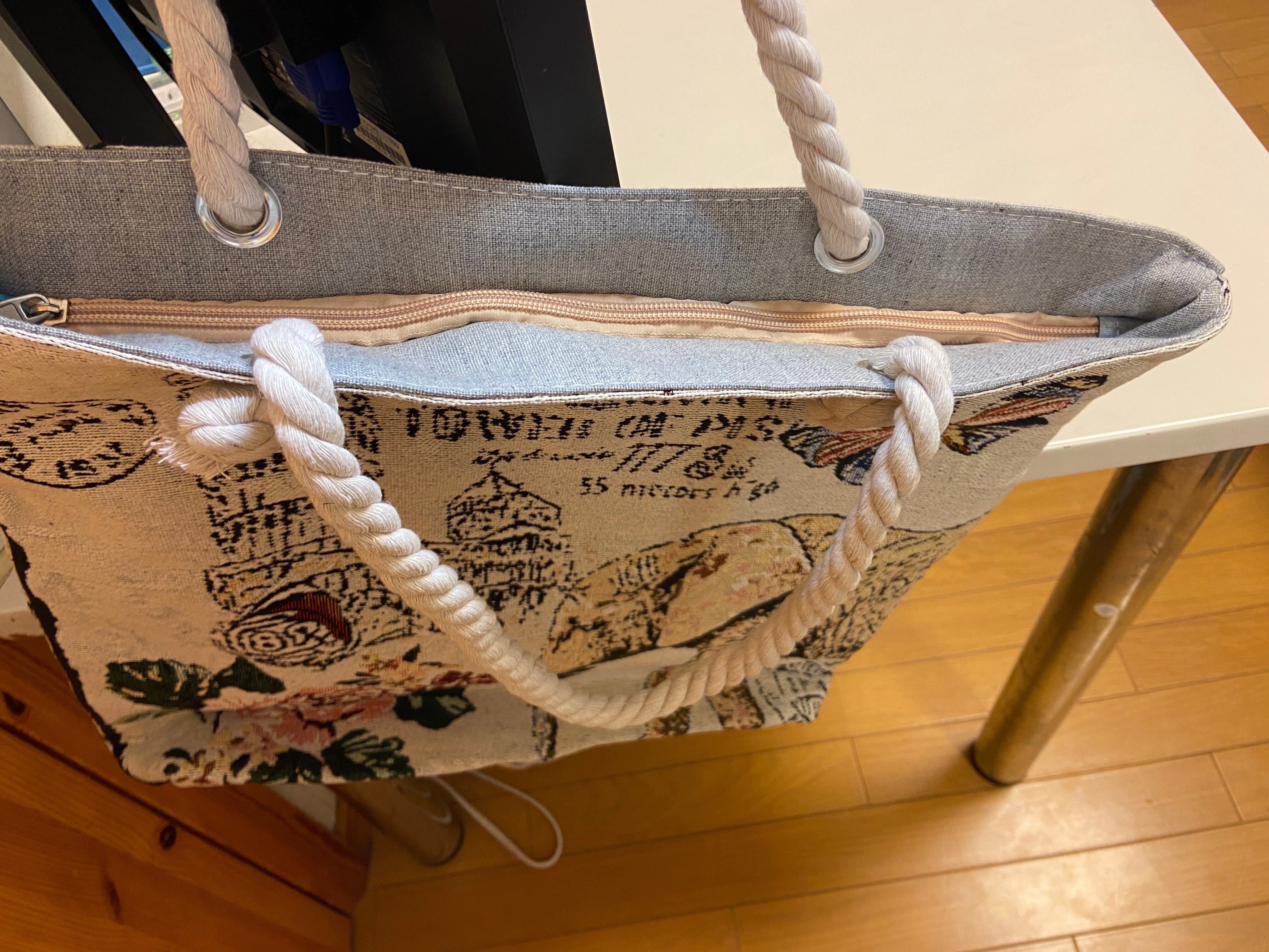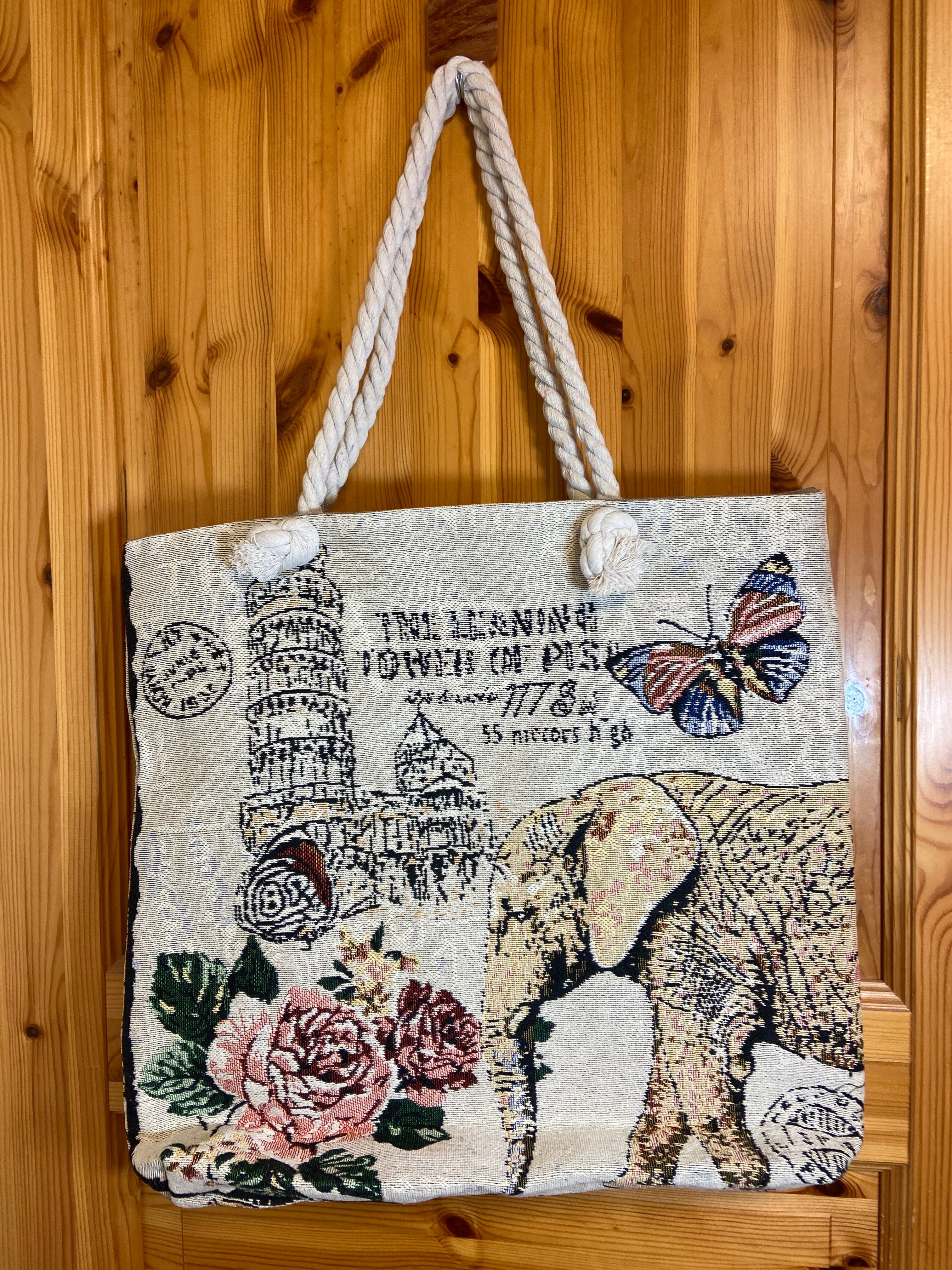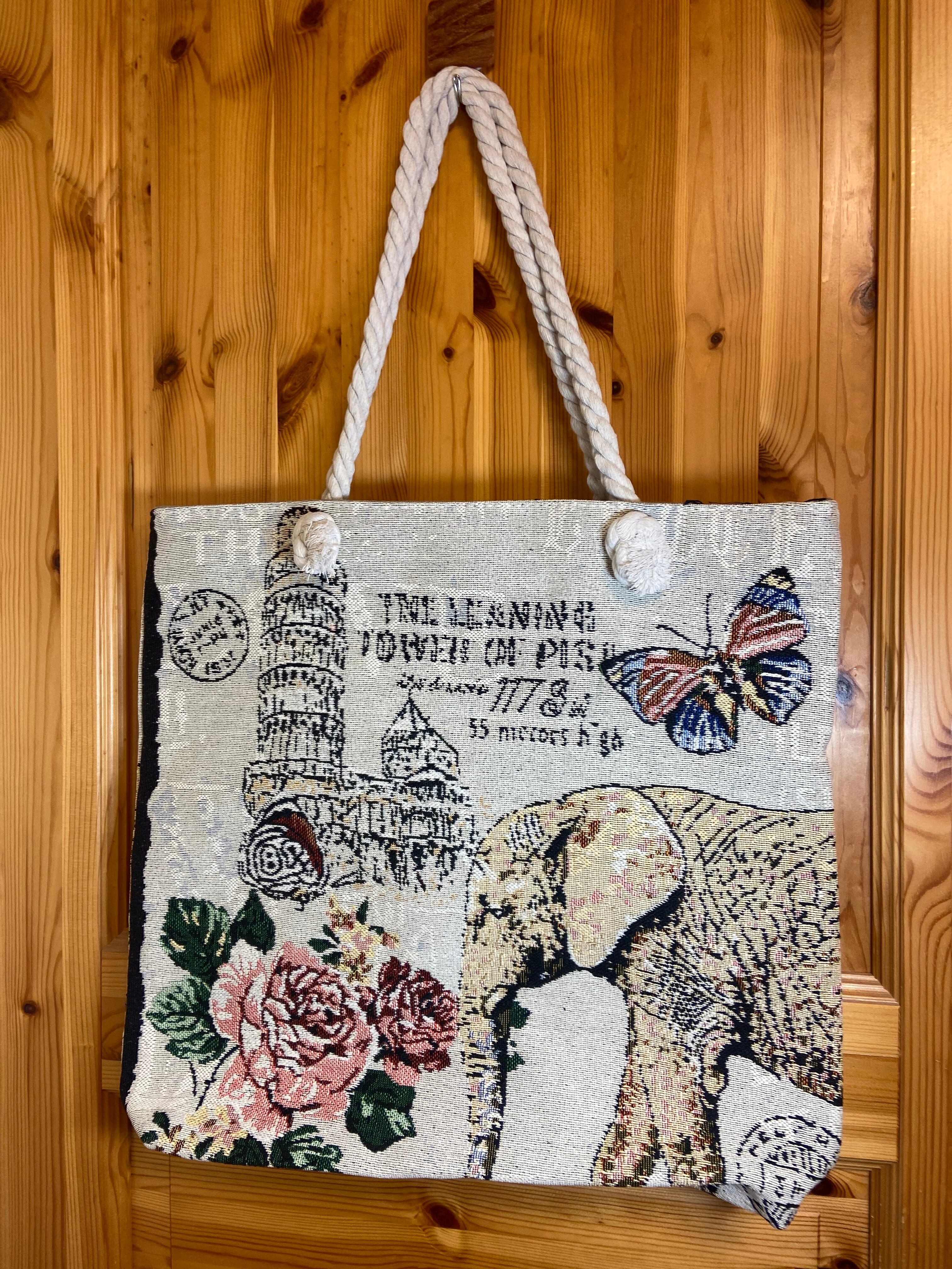 ★お洒落な刺繍のキャンパスバック★ トート ロープ紐 軽くて丈夫 ゾウ柄