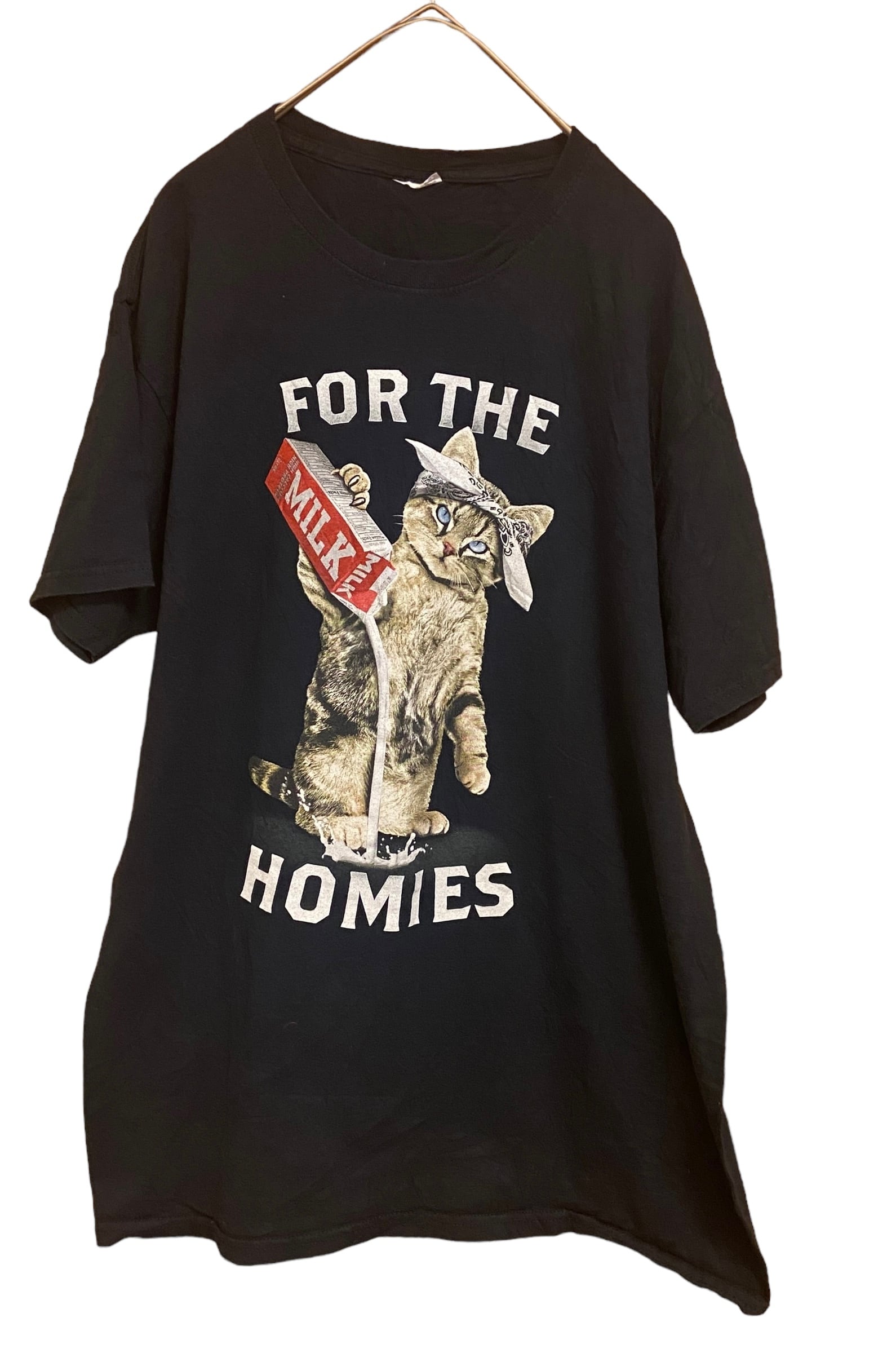 【海外古着】フルーツオブザルーム アニマル古着 猫 ネコ ブラックTシャツ FOR THE HOMIES