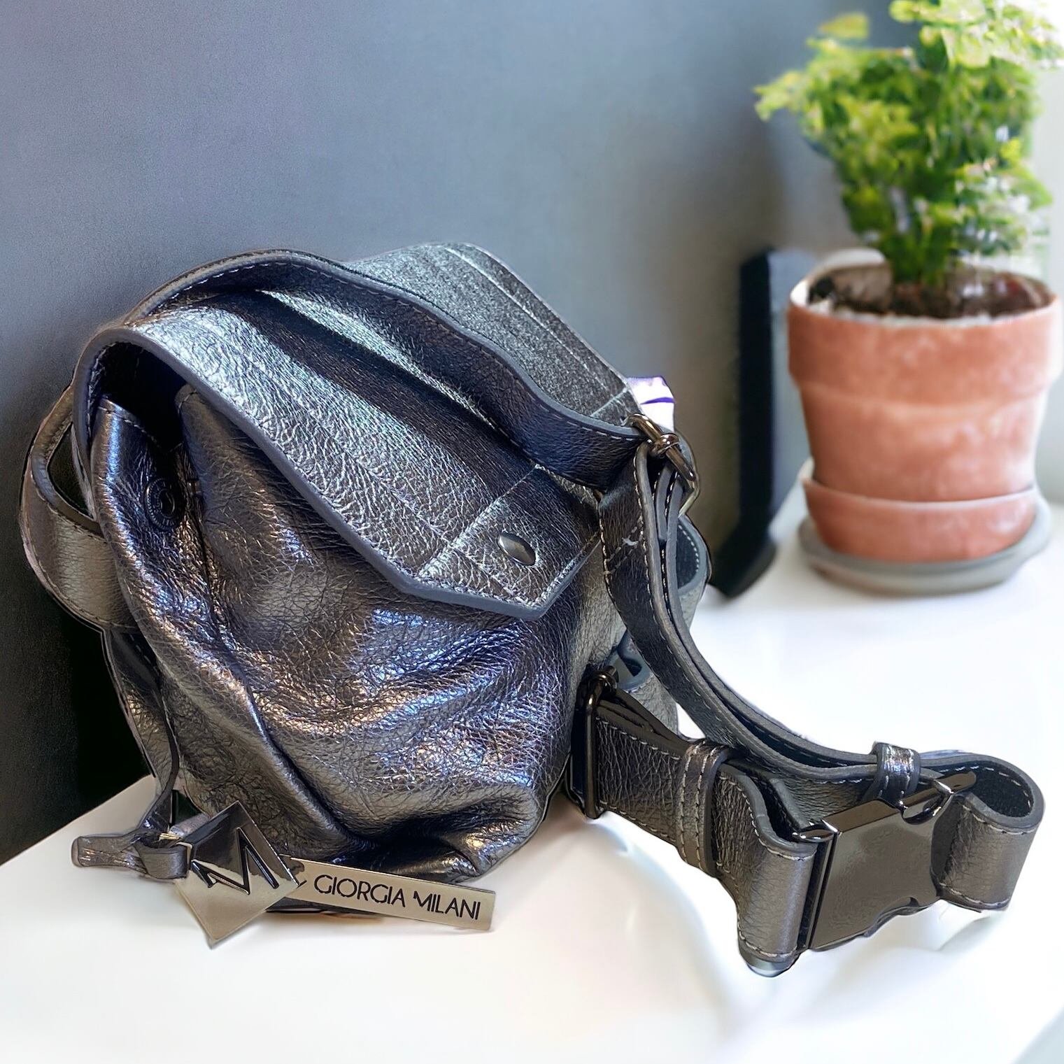 ★GIORGIAMILANI★ ジョージアミラーニ イタリア製 シルバー ボディバッグ ユニセックス